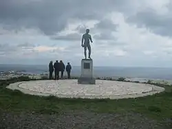 According to Greek mythology, Theseus died on Skyros when he was thrown from a cliff. Neoptolemus, son of Achilles, was from Skyros (or Scyros, as its name is sometimes transliterated), as told in the play by Sophocles, Philoctetes (line 239). In c. 475 BC, according to Thucydides, Cimon defeated the Dolopians (the original inhabitants) and conquered the entire island. From that date, it was colonized by Athenian settlers and became a part of the Athenian Empire. It was on the strategic trade route from Athens to the Black Sea. Cimon claimed to have found the remains of Theseus, and returned them to Athens. In 340 BC the Macedonians took over the island and dominated it until 192 BC, when the king Philip and the Roman Republican forces restored it to Athens. Rupert Brooke, the famous English poet, is buried on Skyros, having died on board a French hospital ship moored off the island in 1915, during World War I.