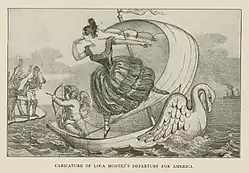 ![]() "Huh, and remember when she was just plain Eliza Gilbert!" Born in Grange near Sligo in 1821, Eliza had a wayward youth and in 1844 set up as a dancer in Paris as "Lola Montez". Liszt and Dumas were among her paramours and she earned rave dance reviews by taking up with the drama critic of a leading newspaper. He got shot in a duel so she moved to Munich and became mistress to King Ludwig I of Bavaria, who conferred her fancy title. The pair were ousted in the revolution of 1848 and Lola rattled around Europe before moving to the USA. She re-launched her dancing career, with come-back shows characterised by much success, zero knickers, and a trail of dead men. In 1861 she died of syphilis, aged 39, and is buried in Brooklyn NY under her original name. |