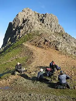 Hikers on Bwlch Coch taking a break