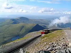 Snowdon mountain railway train near summit
