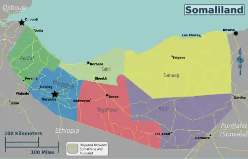 Somaliland (Somali: Somaliland, Arabic: صوماللاند Ṣūmāliland) is a self-declared republic on the Horn of Africa recognised internationally to be part of Somalia. Local authorities declared the region's independence from Somalia in May 1991, but neither the Somali federal government nor any other country or international organisation has recognised its sovereignty, instead claiming it as an autonomous region of Somalia. The local government is very anxious to show its stability and, as a result, foreigners are generally treated with respect and interest. However, high unemployment and increasing discontent at being an unrecognised island of stability in a grim region does cause occasional resentment towards outsiders, particularly NGO workers. For visitors exercising caution and respect, Somaliland is a fascinating place to visit.