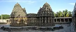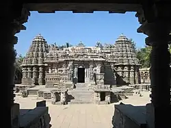 Somnathapura (alternative spelling: Somanathapura or Somnathpur) is a town in Karnataka close to Tirumakudalu Narasipura Taluk. The area was ruled by the Hoysala Dynasty. A minister of the Hoysala dynasty, by name Somanath, planned to establish a temple here, based on the Hoysala architecture. As Hoysalas were mainly Lord Vishnu devotees, a temple, dedicated to Lord Chennakeshava, an incarnation of Lord Vishnu with a flute (Resembling Lord Krishna) was established here, on the left bank of River Cauvery