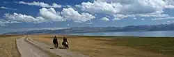 It is the second largest lake in Kyrgyzstan (18x29 km wide, 13 m deep) after Issyk kul. Its name, meaning "following lake", is popularly considered to refer to this relation. It is surrounded by a broad summer pasture and then mountains. The area is inhabited and safely accessible only from June to September.