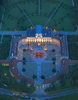 - 🌍 Rococo building (Rokokó lakóház), Várkerület 9 (corner of Festő köz). Two-storey rococo building received its present form in 1750-60. On the right side a cross-vaulted doorway give direct access to the courtyard. The upstairs living room decorated with stucco. In another room there is a Renaissance wooden ceiling.