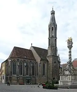 - 🌍 Goat Catholic Church (Szent Benedek Rend Nagyboldogasszony Temploma (Bencés /Kecske/ Templom)), Templom u. 1 (Downtown, on the southern side of the Firewatch Tower), ☏ +36 99 523766. The city's main Roman Catholic church also provided a venue for coronations and parliamentary sessions. Main sights are the frescoes, the lancet windows, and the unique Capistran pulpit.