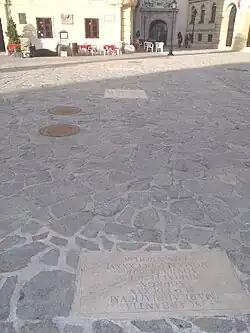 - 🌍 Medieval shop window and door on a building (Középkori üzlet bejárata , German:Neugebaude), Szent György utca 1. (downtown).