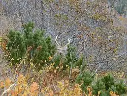 • Mount Kurodake (黒岳, 1984m), or "Black Peak", is located immediately to the south of town. For ¥950/1750 one-way/return a cable car takes you from Sounkyo Onsen to the Fifth Station (五合目), while a chair lift will carry you up to the Seventh Station (七合目) at 1740 meters for ¥400/600 one-way/return. From here it's 244 m vertical and 1.7 km horizontal to the summit. In autumn there is some fairly spectacular autumn foliage to be seen here and you may even spot a deer or two. From the summit, which is watched over by what must surely be one of Japan's most bizarrely placed police boxes, trails to other mountains lead in a number of directions.