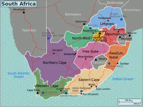 Many region, city, street and building names in South Africa have been changed after the end of apartheid and some of them are still being changed today. These changes can sometimes lead to confusion as many of the new names are not yet well known. This travel guide will use the official new names, but also mention the previous names where possible.