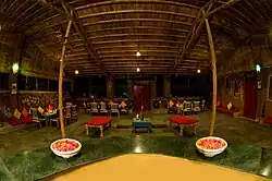 - Dhaba: The dhaba is a roadside restaurant usually on highways that caters to truck drivers and others stopping over between towns. Far from being fancy, dhabas have a rustic ambience. Originally built as mud shacks, they typically have no air-conditioning or heating. The food you get is of a simple, homemade style specific to the area and served on big brass or steel plates called thalis. The original purpose of dhabas was to provide truck drivers with an affordable, freshly cooked meal. Nowadays, you will find eateries in the middle of the city and suburbs offering "dhaba-style" food.