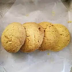 - Nankhatai – a traditional Indian shortbread biscuit or cookie made with flour (a mix of refined, chickpea and semolina), ghee and sugar and flavoured with cardamom. Believed to have originated from Surat in the 16th century, nankhatai are nowadays popular all over Northern India, Pakistan, Bangladesh and Myanmar. The texture of nankhatai is crisp and cracked on the outside but crumbly and melt-in-your-mouth on the inside.