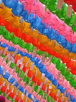 Buddha's Birthday (부처님 오신 날 Bucheonnim Osin Nal or 사월 초파일 Sawol Chopail) — 8th day of the 4th lunar month (April–May) —A legal holiday in South Korea commemorating the birth of Shakyamuni Buddha(석가모니).
