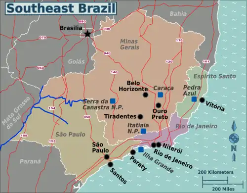 - 🌍 Vitória - The capital of the state of Espírito Santo. It is famous for its beautiful bay, the alongside Convento da Penha (a hilltop Franciscan convent dating from the 16th century), its beaches and nightlife.