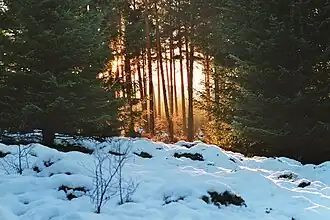 The main trail continues through the Woods of Knockfrink on the fringe of Cairngorms National Park then descends to Cromdale. Cyclists should bypass this soggy section via B9102, as should dog owners, as cattle here have been known to attack dogs. Cromdale old railway station has been privately preserved, the heritage Strathspey Railway doesn't extend this far east, but the trail from here is firm going on the old track into π Grantown-on-Spey. This is a large resort village with lots of amenities for hikers and other visitors.