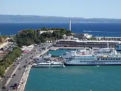 Cruise ships, long distance and short-run ferries all dock at the passenger port next to the bus & railway stations. Ferries run three times a week across the Adriatic to and from Ancona and Pescara (Italy). There is also a large ferry that runs twice a week up and down the coast between Dubrovnik and Rijeka, stopping off at a couple of islands along the way. Split is the main hub for local boats and hydrofoils in Central Dalmatia. Several a day run to and from Brač, Hvar, Šolta, Vis, Korčula and Lastovo.