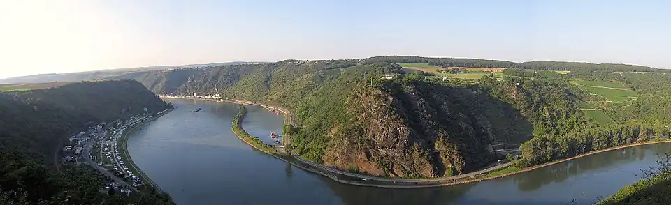 - On the right Rhine side St. Goarshausen with the Burg Katz, Burg Maus and the Loreley