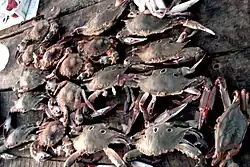 It is possible to walk around Saint Martins in a day since it measures only 8 km2, shrinking to about 5 km2 during high tide. Most of the island's 7000 inhabitants live primarily from fishing, and between October and April fishermen from neighboring areas bring their catch to the island's temporary wholesale market. Rice and coconuts are the other staple crops, and algae is collected and dried from the sea rocks and sold for consumption to Myanmar.