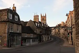 Stamford is halfway between London and York, and was an overnight stagecoach stop on the Great North Road. Some forty coaching inns sprang up to cater to this trade. Several remain that you can stay in, while others have become restaurants or private dwellings. The town retains its medieval street pattern but its heyday was Georgian. Buildings of that era are well-preserved as Victorian industry and construction passed Stamford by. However it was shaken by traffic until the A1 was diverted west of town in 1960.