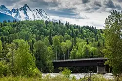 The Cassiar Highway was completed in 1972, and is asphalt-surfaced with the exception of a short gravel break through the Stikine River valley. The highway passes through hilly and mountainous, mostly wooded wilderness region where services are found in sparsely populated communities that are far from each other.