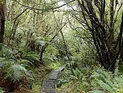 The climate is mild, and a bit damp, but without rain, there wouldn't be a rainforest. The eastern lowlands are forest right to the water's edge. A canopy of kamahi is pierced by majestic rimu and miro. Lianes and lush fern growth adorn the bush interior.