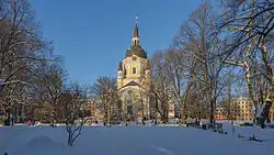 - 🌍 Katarina Church (Katarina kyrka), Högbergsgatan 13, ☏ +46 8 743 68 00. Open to the public M-F 11:00-17:00, Sa Su 10:00-17:00. Katarina kyrka ("Church of Catherine"), named after Princess Catherine, mother of King Charles X of Sweden, can be seen from many parts of central Stockholm from its location on a Södermalm hill. The church was built 1656–1695 and has been rebuilt twice after being destroyed by fires. After the first fire in 1723, the church was given a larger, octagonal tower. Following a new fire in May 1990 which left almost nothing but the external walls, the church was faithfully reconstructed and reopened in 1995. Several notable Swedes are buried in the cemetery. The most well-known is former Foreign Minister Anna Lindh, who was assassinated in 2003.