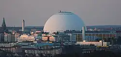 - 🌍 Globen (Avicii Arena), Globentorget (T Globen). It's just south of Södermalm, and claims to be the world's largest hemispheric building -- 110 m across. The Globe has been one of the most eye-catching features of the Stockholm skyline since its inauguration in 1989. It is frequently used for ice hockey games but also for other sporting events, as well as concerts and galas.