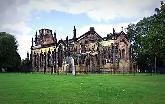 - 🌍 Trinity Green is a small park at the south end of High Street, surrounding the ruins of Holy Trinity Church. This neogothic building was completed in 1835 as a "Commissioners' church", part of the national wave of church-building after victory in the Napoleonic Wars. It became derelict and burned down in 1991; the ruin has been stabilised but is fenced off.
