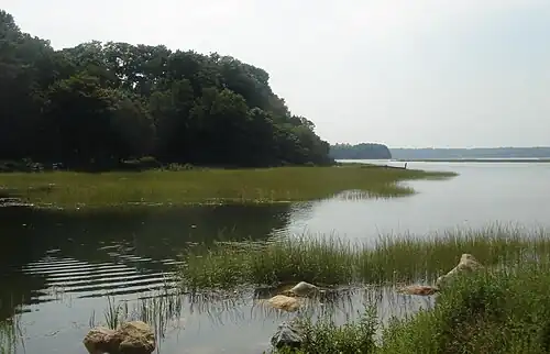 - West Meadow Beach Historic District, West Meadow Beach Rd. This peninsula of park land is approximately 1.5 miles long and was added to the National Register of Historic Places as a National Historic District on October 28, 2004. You can come here to enjoy their long and rocky beaches, or spend your time jogging, hiking, or cycling on beautiful trails. Free of charge to Town of Brookhaven Residents. Non-residents can pay a daily fee during the beach season (Memorial Day weekend-Labor Day weekend).