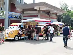 In colder parts of the world street food is less common, usually in the form of single food trucks, carts or kiosks where you can often choose only among variants of the same dish, e.g. hot dogs and sausages with different toppings. There, street food is almost always designed to be eaten by hand and there are seldom designated seats and tables like the ones you would find, e.g. in a Singapore hawker's centre. On the other hand, at market-like events there is usually more to choose from, especially if the event is centered on food!