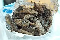 - Egg ball - a boiled egg encased in cassava and batter which is then deep fried. A version of the snack without the boiled egg in the middle also exists and is called cassava ball.