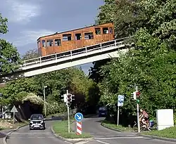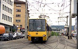 The historic cable-car (Standseilbahn) line connects Stuttgart-Heslach with the Waldfriedhof cemetery on the hill. It only has two stations - one downhill and one uphill:
