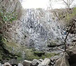 - Los Tercios waterfall (on the road south towards San Martín, turn left at the gas station, following the signs for Los Tercios; after about 2 km, there is a small sign and parking space on the left; a short trail leaves from there; go straight for a viewpoint for the lake; keep right to climb down some rocks to the waterfall). A waterfall made of a formation of hexagonal rocks. Even during the rainy season, the waterfall is usually dry; the hexagonal rocks are fascinating nevertheless. The tourism office recommends to visit Los Tercios only accompanied by tourism police who might join you there in the afternoon. The road to Los Tercios is relatively busy and there are also often tourists at the waterfall. $1 for foreigners and Salvadorans (updated May 2023).