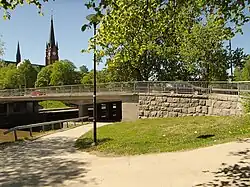 The central Stenstaden is mostly pedestrianised. The main square is "Stora Torget", a pleasant space with building styles ranging from red-brick "Midland-Railway-Belle-Epoque" to concrete brutalist. The main church, Gustav Adolf Lutheran church, is just west.