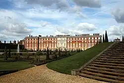 - London, particularly its nearest royal palaces, one of which faces Surrey from across the river.