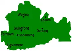 - 🌍 Dorking – picturesque town lying in valley between the North Downs and the county's highest point with National Trust scheme tower inc. mini-museum, Leith Hill. England's largest vineyard, great antiques, jewellery and furniture shopping, and superb running, walking and outdoors paths and cycling opportunities to immediate north and south.