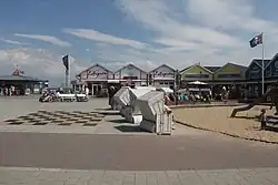 Along the beach, concrete groynes were built into the sea in an effort to halt sand erosion. These groynes are not visible at high tide and present a danger to unaware bathers. They are marked with cross signs along the beach.