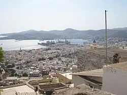- 🌍 Ano Syros (Άνω Σύρος) (A free island bus leaves from Agora bus stop in Ermoupoli every two hours from 8.30am to 2pm, and every hour from 7.30pm to 10.30pm. It will take you to Camára [Καμάρα] at the bottom of Ano Syros, from where it is a short but steep walk (with steps) up to the Piatsa main street; most buses carry on up to Pano Terma [Πάνω Τέρμα] at the top of Ano Syros, which is a good option for the Cathedral (see below), or if you prefer a more relaxed downhill walk through the medieval district. Taxis to Ano Syros cost around €6.). This is the city's medieval district, with many winding passages and stairways, myriad chapels and churches, as well as the Cathedral of St George (see below). There are some tasteful tourist shops and tavernas with breathtaking views over the bay of Ermoupoli. Most of the places to eat only serve food in the evenings, after 7pm.