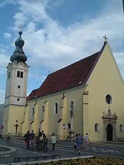 - 🌍 Franciscan Church and Monastery of Szombathely (Szombathelyi Római katolikus Szent Erzsébet ferences templom és kolostor), Aréna u. 1 /A., ☏ +36 94 311-689. M-Sa 06:00-12:00, 16:00-19:15,; Su 06:00-12:30 and 15:00-19:15. This is a former Franciscan Church, built in Gothic style in 1380s. In 1630 with a tower expanding and slightly modified in Baroque style. The temple main asset a picture of the altar showing the city in 1716, this is the oldest authentic portrayal about Szombathely. On the wall of the sanctuary can be seen a 14th-century Gothic fresco fragments probably depicting St. Elizabeth.
