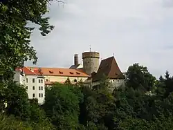 - 🌍 Kotnov Tower and Bechyne Gate, ulice Na Parkánech (400 m from Zizka Square, follow Klokotska street). 08:30-17:00, closed Oct-Apr. Kotnov Tower is the only remnant of Tábor Castle, which was destroyed by fire in 1532. Bechyne Gate, the southwest entrance to historic centre is next to the tower. 20 Kč.