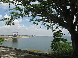 - Dau Tieng Reservoir (19 km from Tay Ninh). It was constructed in 1981 to provide water in Tay Ninh province as well as neighboring provinces. The lake covers an area of 27,000 hectares, and it contains up to 1.5 billion m³ of water. The reservoir is set in a beautiful landscape of surrounding of mountains with many islets.