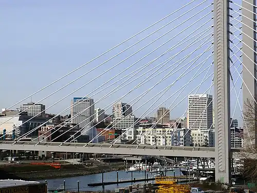 Tacoma adopted its name after the nearby Mount Rainier, called təˡqʷuʔbəʔ in the Puget Sound Salish dialect. In the late 19th century, the city was chosen to be the western terminus of the Northern Pacific Railroad, influenced by its deep-water harbor at Commencement Bay, which became Washington's largest port. The city gained notoriety in 1940 for the collapse of the Tacoma Narrows Bridge, which earned the nickname "Galloping Gertie" due to the vertical movement of the deck during windy conditions.