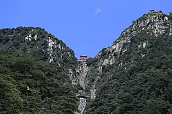 🌍Red Gate(红门, Hom-Men).Red Gate, full name Taishan Red Gate Palace, is located in Tai 'an City, Shandong Province and Licheng and Changqing county in the southern foot of Taishan Wangmu Lake northwest. It is the starting point of climbing Mount Tai, because there are two red doors on the northwest cliff, which look like doors and get its name.(updated Feb 2016)