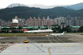 - 🌍 Songshan Airport (TSA IATA, officially Taipei International Airport (臺北國際航空站)) (at the northern end of Dunhua North Road). It serves a few domestic destinations as well as select international routes to regional destinations. There are numerous daily flights arriving and departing for the outlying islands and cities on the east coast of the island. The airport also serves flights to various destinations in mainland China, as well as "city shuttle" services to Tokyo-Haneda, Seoul-Gimpo and Shanghai-Hongqiao. The airport is served by the Taipei Metro Wenhu Line's (officially labeled the Wenshan-Neihu Line) Songshan Airport Station and can be reached in about 15 minutes from Taipei Main Station. Many city and long-distance buses also connect to the airport.