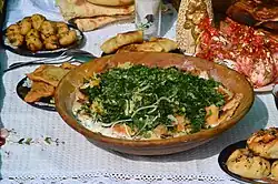 - Dolma: steamed rolls with grape leaves and meat inside, served with sour cream and red pepper