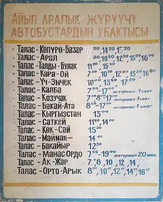 - 🌍 Urban bus station (автоъекет). For Manas Ordo and other close-by destinations. Timetable see picture to the right.