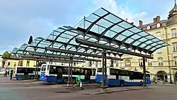 An extensive city bus network connects the suburbs to the centre. Due to the unique geography of Tampere centre, most of the bus lines run in the east-west direction and pass through the main street Hämeenkatu. All buses except a few circle lines stop at the central square, Keskustori, or nearby Koskipuisto.
