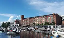 - 🌍 Holiday Club Tampere, Lapinniemenranta 12 (on lakeside 1.5 km north of centre), ☏ +358 210-100-000. A spa hotel next to a marina, built into an old cotton mill with high rooms. B&B double €110.
