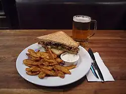 - 🌍 Panimoravintola Plevna, Itäinenkatu 8 (in the Finlayson area), ☏ +358 3 260-1200, myynti@plevna.fi. M 11:00–23:00, Tu–Th 11:00–01:00, F Sa 11:00–02:00, Su 12:00–23:00. Plevna Brewery Pub & Restaurant is a true Tampere institution in an 135-year-old weaving hall, which saw the first electric light bulbs in Nordic countries in 1882. The pub is named after a Balkan town where men from Finlayson cotton mills fought alongside Russian troops in the Russo-Turkish War. They serve hearty traditional meals accompanied with their own delicious microbrews, with more sausages and sauerkraut than you can shake a mug at. Try, for example, the arguably best Finnish beer, Siperia Imperial Stout, with hearty mustamakkara blood sausage.