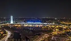There are two terminals: the shiny, pleasant international terminal, and the old but functional domestic terminal 200 m away.