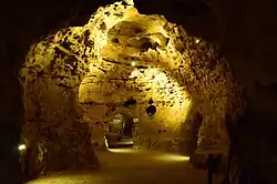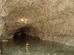 - Tapolca Cave Lake. This 3-km-long lake cave system is in the heart of the town. Small boats can be hired to explore the cave system. At 15–20 m below the town, a 5-km-long cave system criss-crosses the Miocene limestone layers. This includes the 3.3-km-long Lake Cave, which is mostly filled with karst water. The cave was discovered in 1903 during well digging. Thanks to these explorations, round boat trips were made possible from 1937. Because of its special origin and unique formations, it was designated a protected area in 1942 and placed under strict protection in 1982. The mixture of the cold karst water flowing there and the thermal water up-surging from the deep dissolves limestone. Initially narrow passages, then smaller and larger niches were formed. Over a very long period, these widened into spacious chambers and passages. Dripstones have not developed in the cave, as several-metre-thick clay deposits prevents infiltration from the surface. Only calcareous formations (cave corals and aragonite crystals) occur at some places, having precipitated from the cave air. Bats cannot enter the closed spaces, so the largest vertebrate is a 10-cm-long fish, the Common minnow (Phoxinus phoxinus L.), which probably swims in through the wet passages from the Malom-tó (Mill Pond). The cave air, with nearly 100% humidity, a high calcium content and a constant temperature of 20 °C, is used to cure respiratory diseases in the branches under the town hospital that are in close proximity with the cave. The radon content of the cave air is too low to have any effect on the visitors. It is an interesting place which is worth a visit. This cave lake is also the biggest attraction of the entire city.