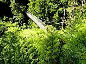 - Fern Gully Track, including the Willis Track (coloured on map) โ an easy 15-minute loop that takes less than a kilometre, but more importantly, passes through ๐ Corrigan Suspension Bridge, the park's main draw.
